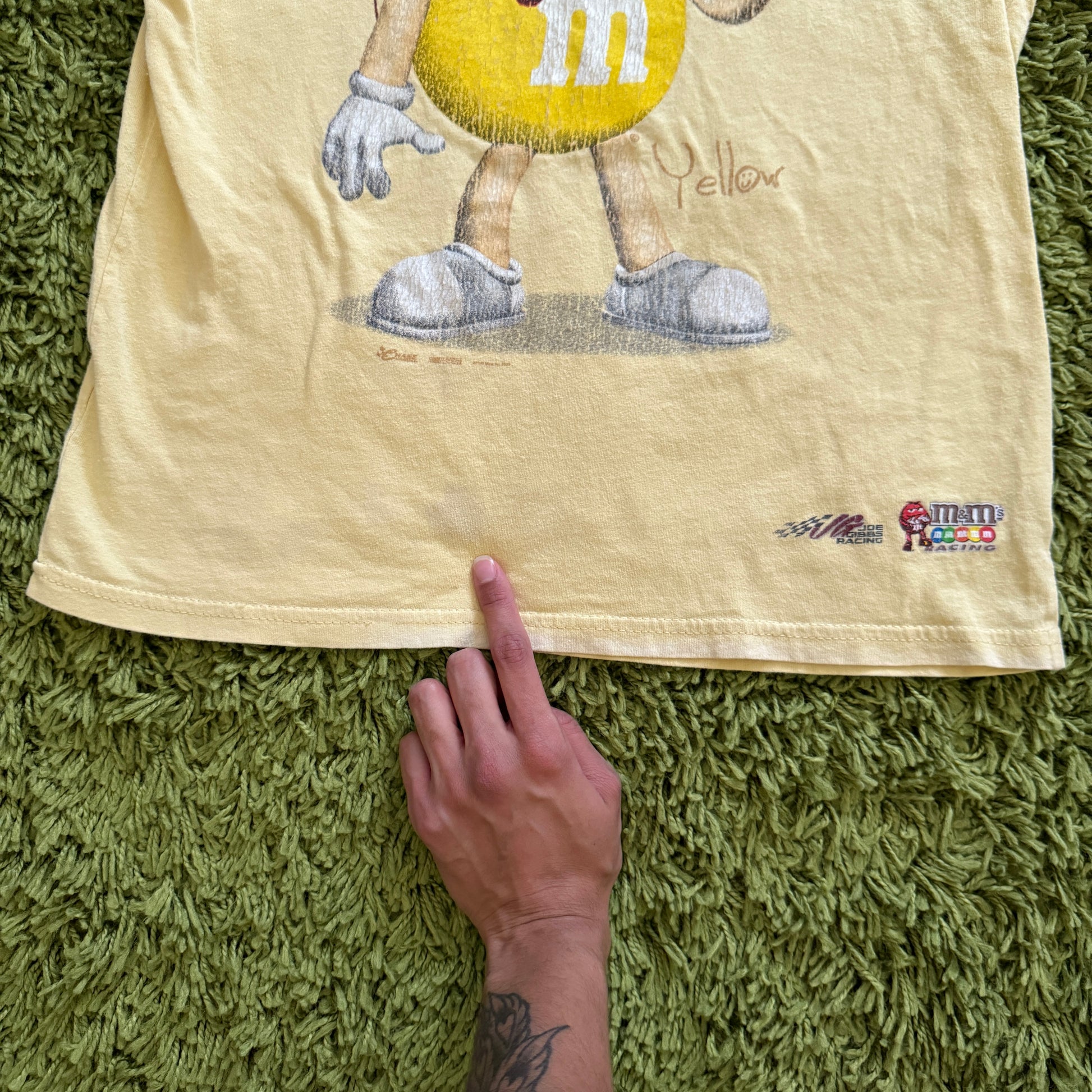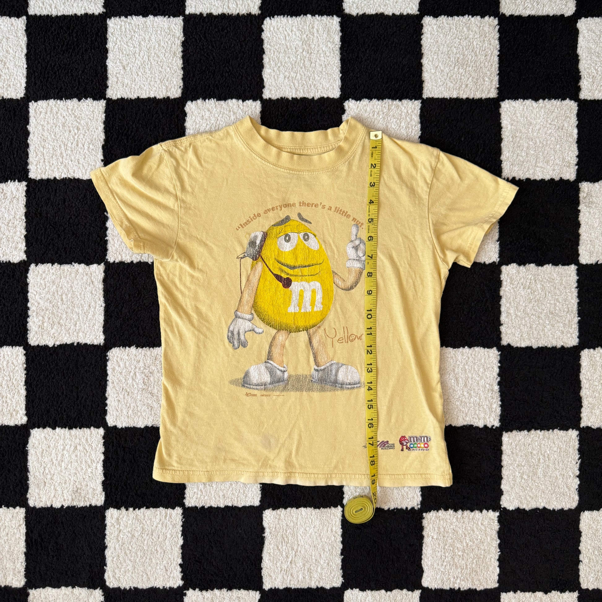 unique vintage whimsy 90s y2k NASCAR M&M graphic baby tee