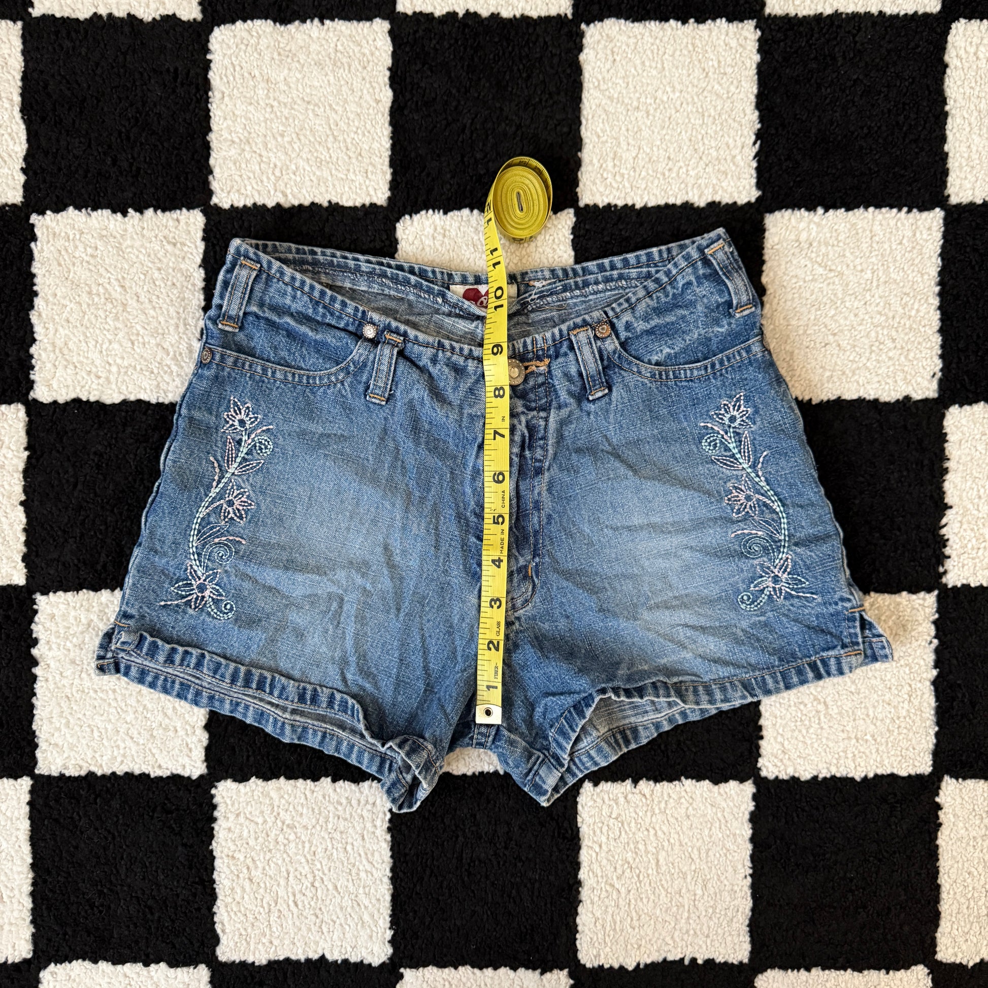 vintage whimsy 90s y2k denim embroidered shorts
